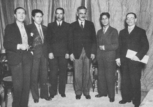 De izquierda a derecha: A. de Silva, C. Sánchez Málaga, F. Ibáñez, D. Alomía Robles, T. Valcárcel y E. López Mindreau