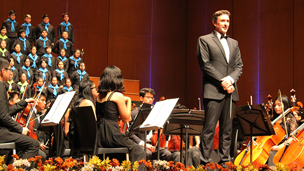 El concierto contó con la presencia de la Orquesta y Coros de Sinfonía por el Perú, su director titular Hugo Carrio, la soprano venezolana Dorian Lefebre y el tenor peruano Juan Antonio de Dompablo. El programa empezó con la Sinfonía N°9 de Antonín Dvořák también conocida como Sinfonía del Nuevo Mundo.
