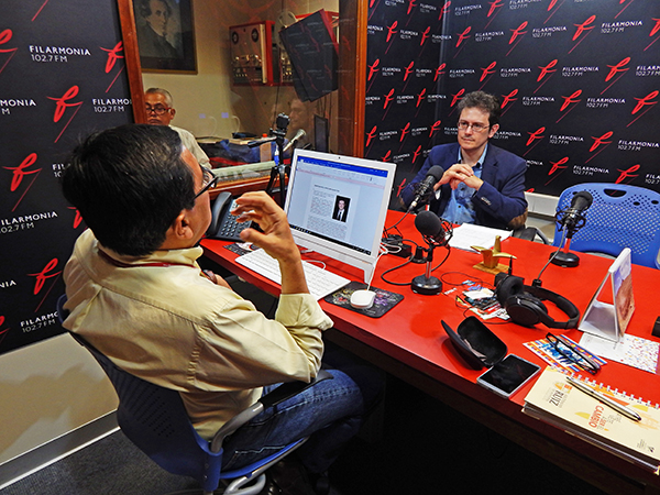 El director italiano Sebastiano Rolli visitó hoy lunes 07 de mayo al mediodía nuestras instalaciones para participar en el programa "Meridiano" que conduce Carlos Fernández Loayza, donde dio detalles de su carrera así como de su próxima participación en el Concierto de Gala de Radio Filarmonía que se llevará a cabo este sábado 12 de mayo en el Auditorio Santa Úrsula. Entradas a la venta en Teleticket.