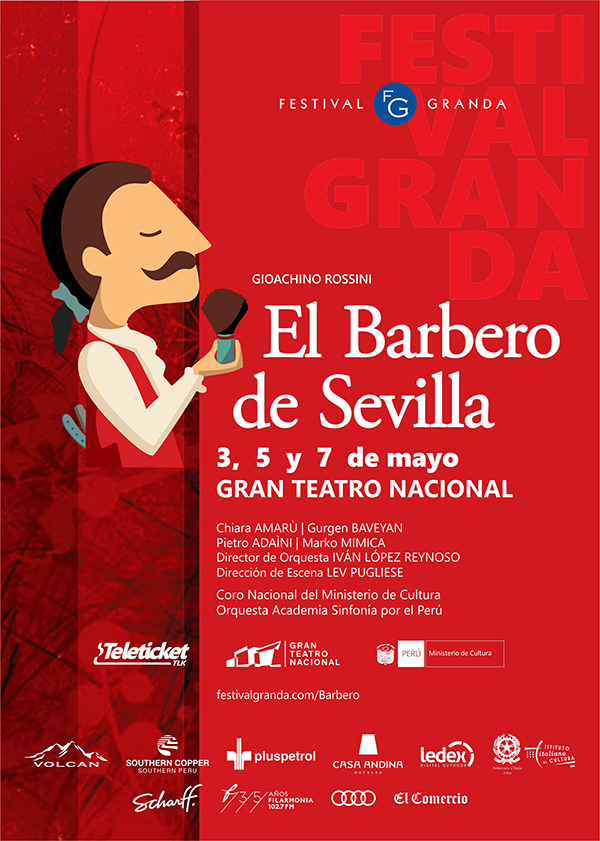 El Festival Granda presenta este 2019 una nueva producción de El barbero de Sevilla (Il Barbiere di Siviglia), de Gioachino Rossini. 3, 5 y 7 de mayo en el Gran Teatro Nacional. Entradas en Teleticket desde S/.27 https://teleticket.com.pe/evento/V6402 y en la boletería del teatro.